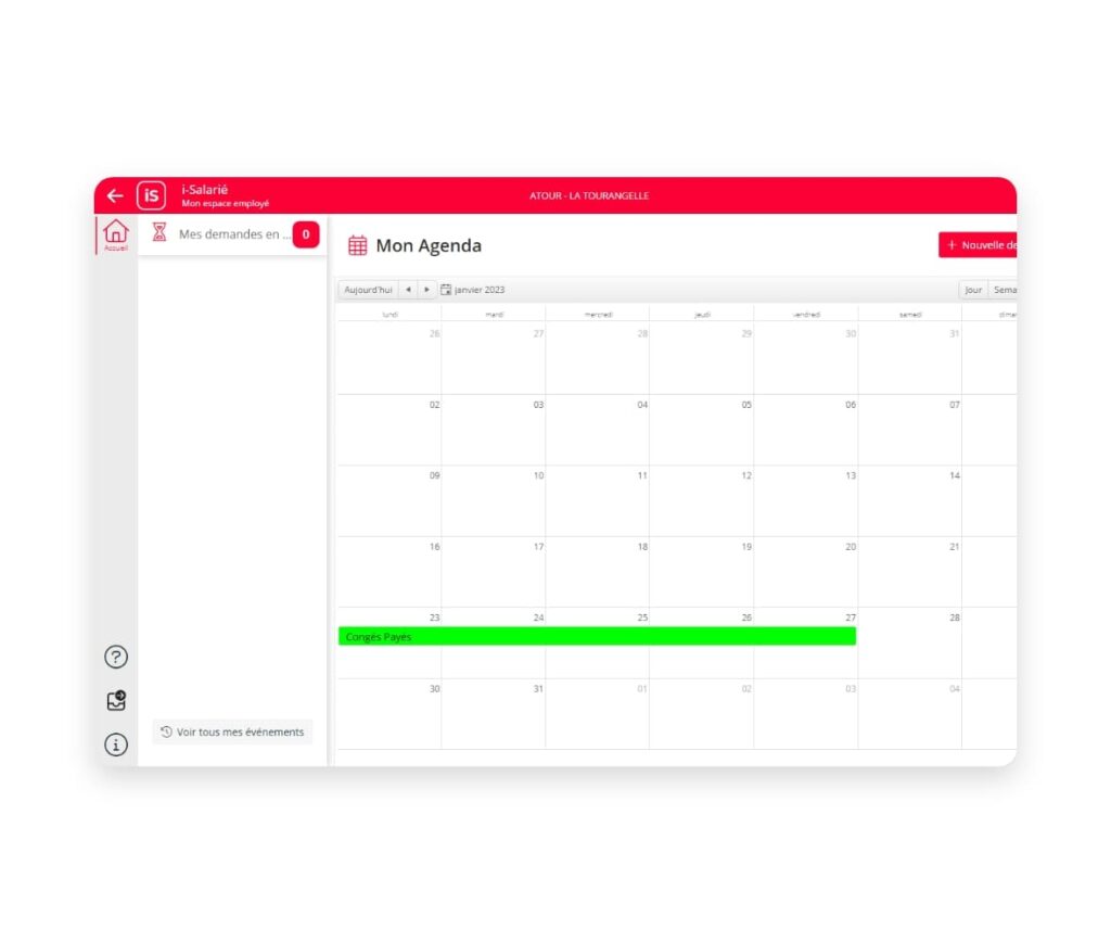 - Gérez des événements : validation et saisie des événements de vos salariés et visualisation des plannings
